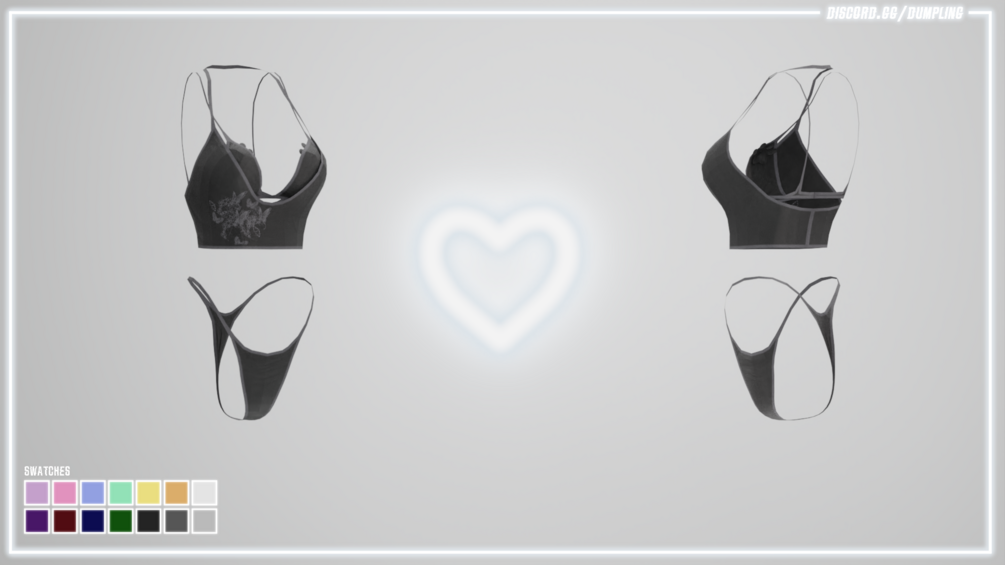 pasties, undies + top made by me in blender and textured in substance painter, four meshes, 1 material, 14x2 color variants (+1 butterfly design) texture maps included.