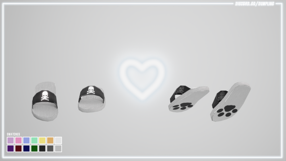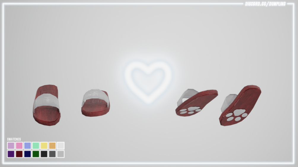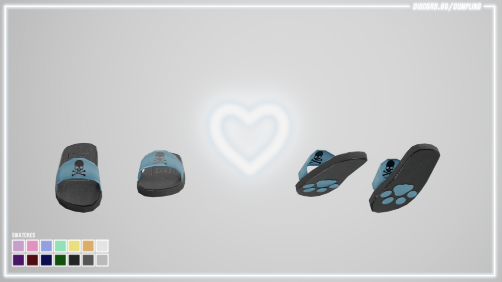 slippers made by me in blender and textured in substance painter, 1 mesh, 1 material, 14x2 color variants (+4 decal designs) texture maps included.